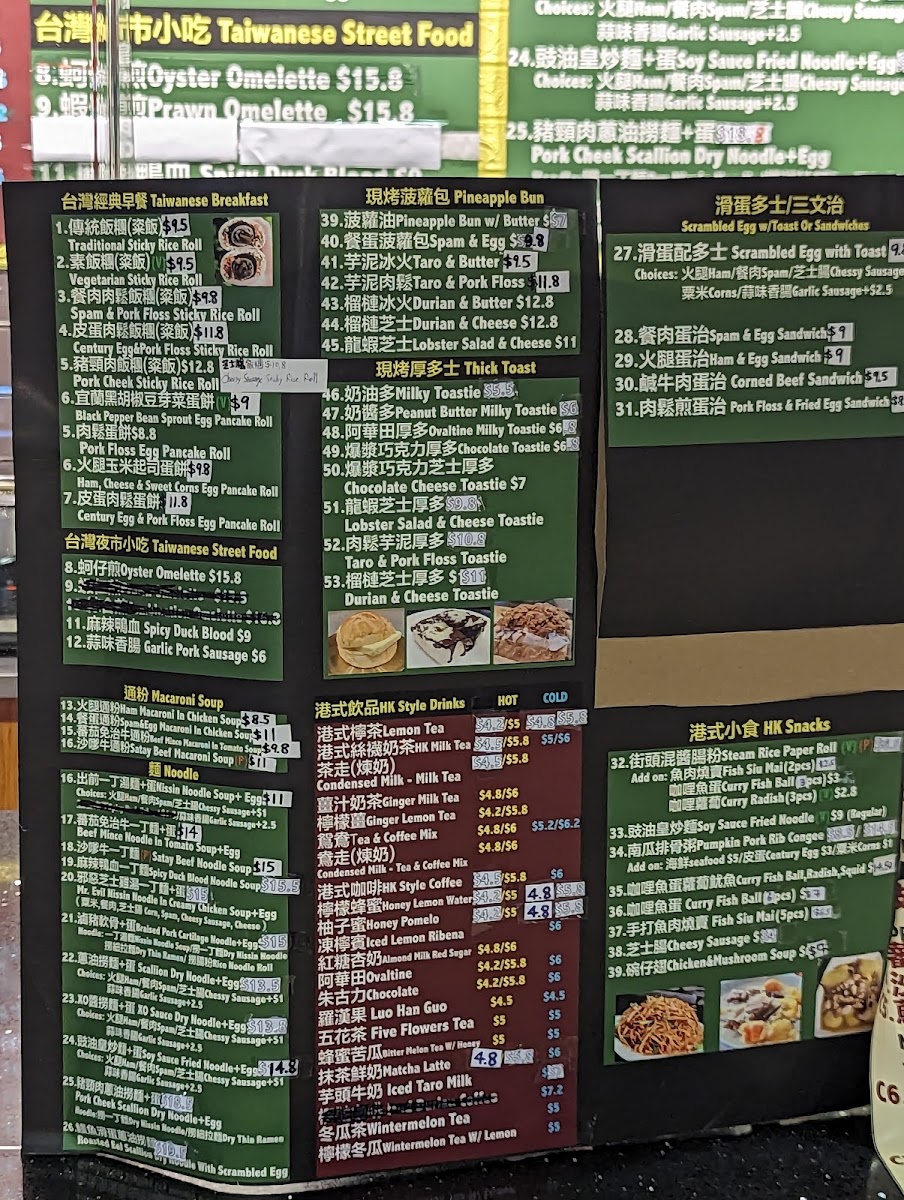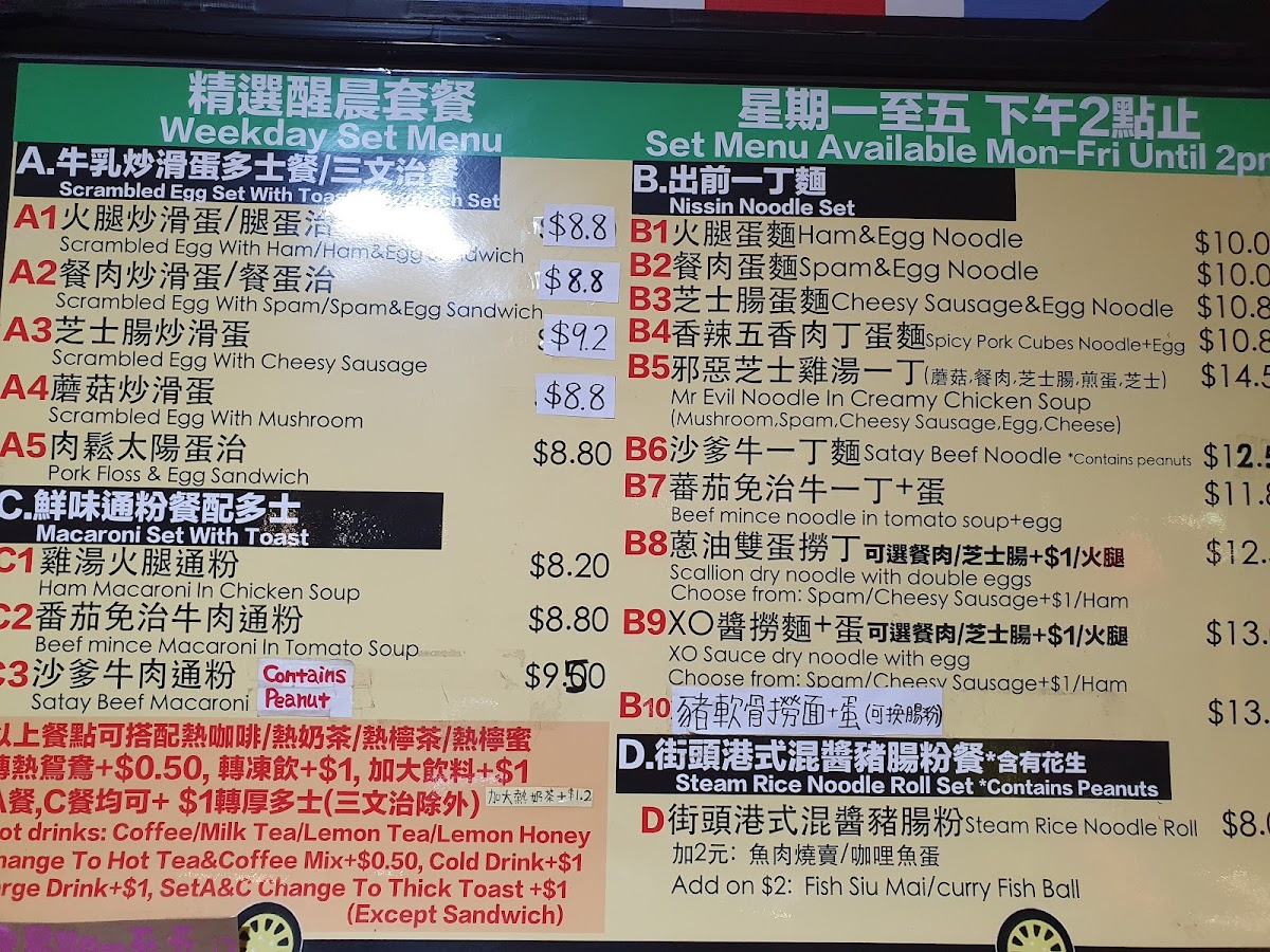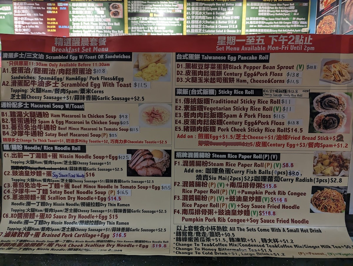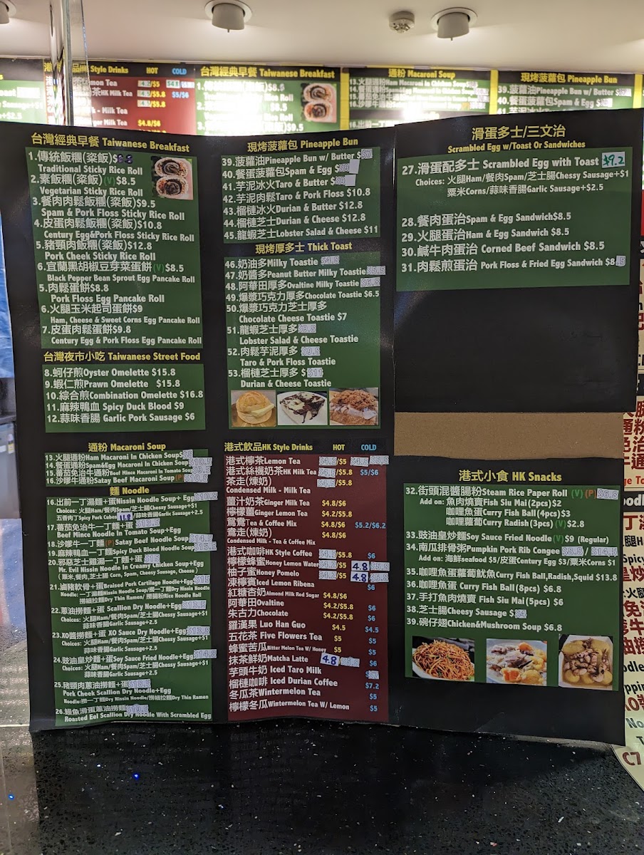 Tea Square Cafe at Mandarin Center offers a menu that effortlessly blends comforting classics with creative twists, appealing to both casual diners and adventurous eaters. The Macaroni Soup section features hearty options like Spam And Egg Macaroni In Chicken Soup, Satay Beef Macaroni Soup, Beef Mince Macaroni In Tomato Soup, and Ham Macaroni In Chicken Soup, each promising a nostalgic, soul-warming experience. Breakfast lovers can enjoy Traditional Sticky Rice Roll, Vegetarian Sticky Rice Roll, Pork Cheek Sticky Rice Roll, Spam And Pork Floss Sticky Rice Roll, and Century Egg And Pork Floss Sticky Rice Roll, showcasing authentic Taiwanese flavors. The HK Snacks lineup, including Pumpkin Pork Rib Congee, Chicken And Mushroom Soup, Curry Fish Ball, Fish Siu Mai, and Soy Sauce Fried Noodle, provides a satisfying mix of savory bites. For noodles, the menu impresses with options like Soy Sauce Fried Noodle And Egg, XO Sauce Dry Noodle And Egg, Mr. Evil Nissin Noodle In Creamy Chicken Soup And Egg, Braised Pork Cartilage Noodle And Egg, and Beef Mince Noodle In Tomato Soup And Egg, each prepared with generous portions and rich flavors. Fans of baked treats will find the Pineapple Bun offerings, such as Durian And Butter Bun, Lobster Salad And Cheese Bun, Taro And Pork Floss Bun, Durian And Cheese Bun, and Taro And Butter Bun, both indulgent and inventive. For lighter cravings, Street Food like Garlic Pork Sausage and Thick Toast options, including Peanut Butter Milky Toastie, Milky Toastie, Milo Milky Toastie, Lobster Salad And Cheese Toastie, and Chocolate Toastie, round out the menu. The beverage selection balances hot and cold favorites, from Cold Honey Lemon Water, Cold Signature Lemon Tea, and Cold Mix Tea And Coffee to Hot Condensed Milk Tea And Coffee Mix, Hot Ginger Milk Tea, and Hot Milo, ensuring every drink complements the meal. For a simple yet satisfying protein boost, the Scrambled Egg sandwiches, including Corned Beef Sandwich, Ham And Egg Sandwich, Spam And Egg Sandwich, and Pork Floss And Fried Egg Sandwich, deliver familiar flavors with a comforting touch. Overall, Tea Square Cafe presents a well-curated menu where each dish, from soups and buns to noodles and beverages, reflects both traditional roots and playful creativity, making it a must-visit spot for anyone in Chatswood seeking a flavorful, diverse dining experience.
